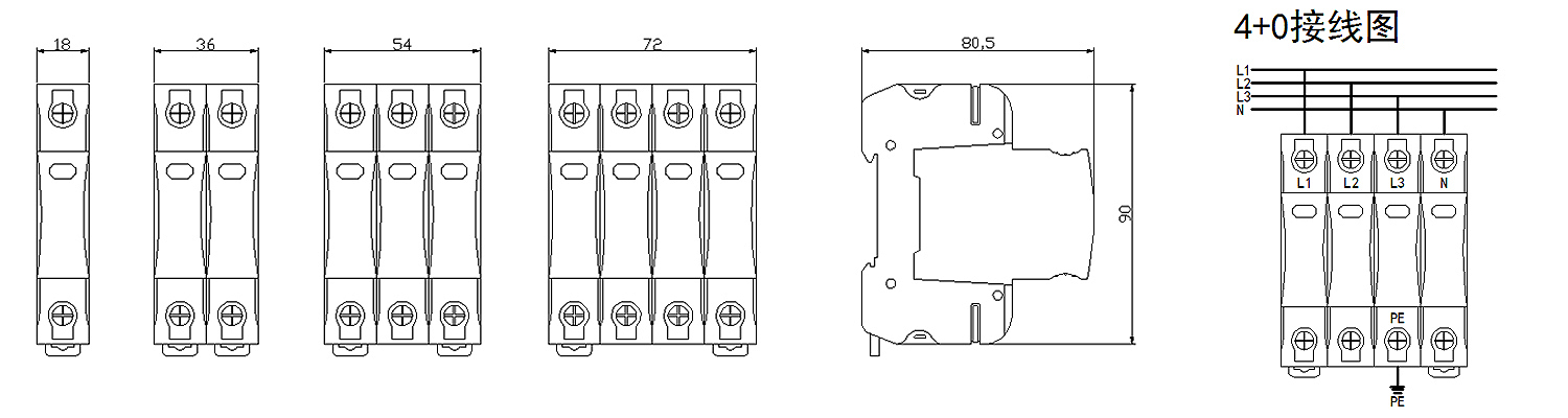 電源相線(L)、零線(N)分別接入電涌保護(hù)器相應(yīng)接線端子,保證牢固及可靠,將避雷器接地端與防雷地線(推薦接地電阻≤4Ω)作良好電氣連接。
