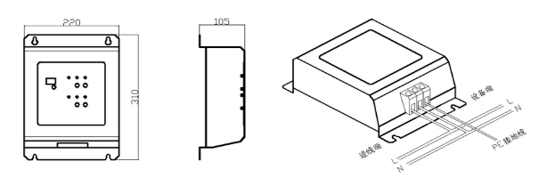 電源相線(L)、零線(N)分別接入電涌保護(hù)器相應(yīng)接線端子,保證牢固及可靠,將避雷器接地端與防雷地線(推薦接地電阻≤4Ω)作良好電氣連接。