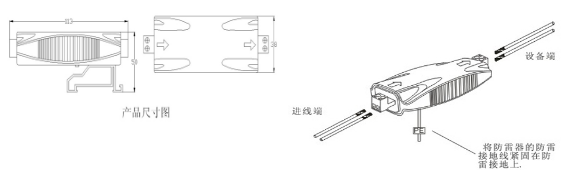 在被保護(hù)設(shè)備的線路接口前端串聯(lián)接入避雷器,“OUT”為設(shè)備端、“IN”為進(jìn)線端,將避雷器接地端與防雷地線(推薦接地電阻≤4Ω)作良好的電氣連接。