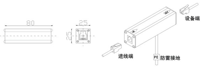 在被保護設(shè)備的線路接口前段串聯(lián)接入避雷器,“OUT”為設(shè)備端、“IN”為進線端,將避雷器接地端與防雷地線(推薦接地電阻≤4Ω)作良好的電氣連接。
